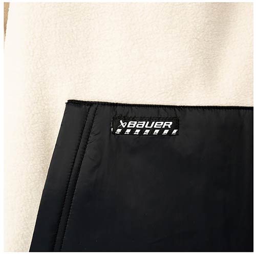 The Bauer Polar Fleece Pullover Senior in black-cream combines sporty style with functional warmth. The premium polyester polar fleece provides a soft, cozy feel, while durable nylon overlays on the shoulders and chest offer extra protection and a modern look. The retro-fit cut ensures a relaxed fit - perfect for training, travel, or everyday wear around the rink.