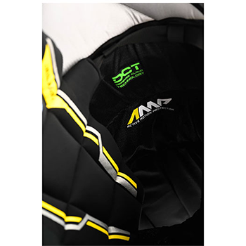 The distinctive AMP technology, combined with DC Tech foam, offers exceptional mobility without sacrificing protection. The hips are comprehensively covered, shielding them from potential injuries, allowing you to move freely on the ice.