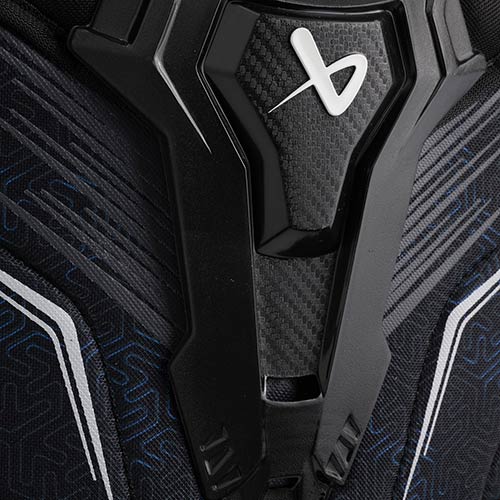 The molded sternum provides additional protection in the event of falls or collisions.